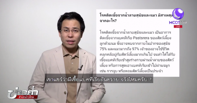 บนสังคมออนไลน์แชร์เตือนว่า “โรคติดเชื้อจากแบคทีเรียที่อยู่ในน้ำลายสุนัขและแมว”อันตรายถึงชีวิต เรื่องนี้จริงหรือไม่ ติดตามจากศูนย์ชัวร์ก่อนแชร์