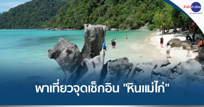 นักท่องเที่ยวคึกคักช่วงวันหยุด จุดเช็กอิน “หินแม่ไก่” บนเกาะสุรินทร์ จ.พังงา ทะเลสวย น้ำใส หาดทรายขาว