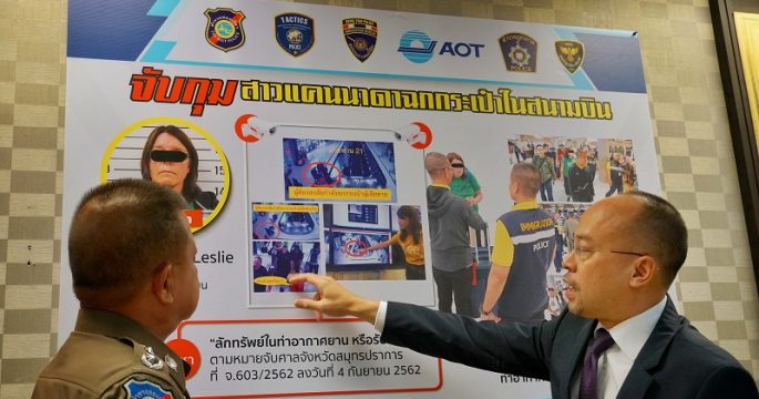 หญิงสัญชาติแคนาดาถูกชุดเจ้าหน้าที่คุมตัวขณะเช็คอินสนามบินสุวรรณภูมิ หลังพบหลักฐานวงจรปิดก่อเหตุลักทรัพย์กระเป๋าเดินทางในสนามบินเมื่อปลายเดือนสิงหาคม