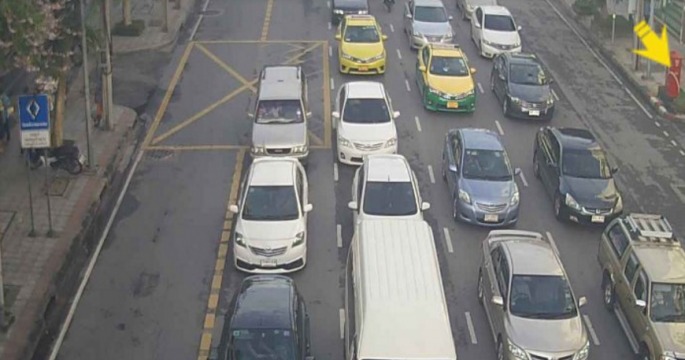 การจราจรเช้าวันอังคาร ถนนรัชโยธิน จากแยกรัชโยธิน มุ่งหน้าห้าแยกลาดพร้าว รถมาก เคลื่อนตัวช้า
