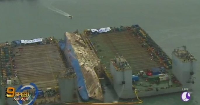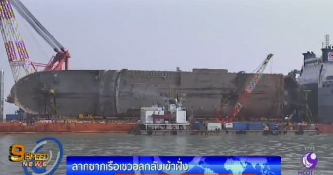เกาหลีใต้เตรียมการนำเรือเซวอลเข้าฝั่ง หลังจากที่นำเรือลอยขึ้นมาจากก้นทะเลที่ความลึก 44 เมตรได้เป็นผลสำเร็จ คาดต้องใช้เวลานาน 12-13 วัน