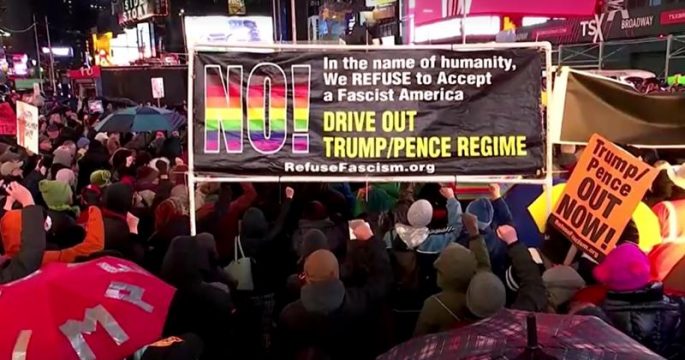 ชาวนครนิวยอร์กเดินขบวนสนับสนุนการถอดถอนทรัมป์ออกจากตำแหน่ง
