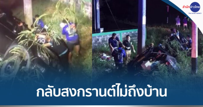อุทาหรณ์ 2 สามีภรรยา หวังกลับบ้านเกิดฉลองเทศกาลสงกรานต์ แต่กระบะเสียหลักชนอัดก๊อปปี้กับเสาไฟฟ้า ภรรยาเสียชีวิต
