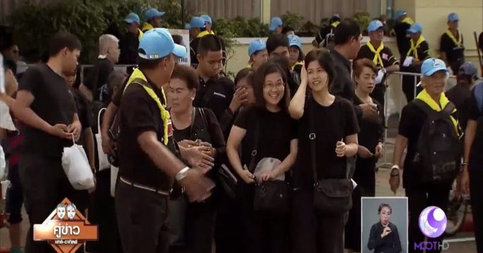 จุดคัดกรองพระแม่ธรณีบีบมวยผม ประชาชนยังเดินทางมาอย่างต่อเนื่องตั้งแต่ช่วงเช้า เพื่อชมการซ้อมริ้วขบวนพระบรมราชอิสริยยศ ทั้งนี้เจ้าหน้าขอความร่วมมือประชาชนแต่งการด้วยความสุภาพ