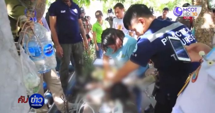เจ้าหน้าที่กู้ภัย CPR ยื้อชีวิตวัยรุ่น 16 ปีแต่ไม่เป็นผล หลังจมน้ำนานกว่าครึ่งชั่วโมงบริเวณสระน้ำขนาดใหญ่กลางทุ่งนา บ้านท่ากระพี้ ต.วังลึก