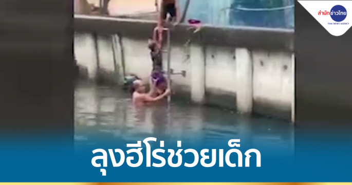 นนทบุรี 9 พ.ย.- โลกออนไลน์แชร์คลิปภาพคุณลุงคนหนึ่งกระโดดลงไปในคลองช่วยเด็กชายวัย 9 ขวบ ที่กำลังดำผุดดำโผล่ใกล้จมน้ำในคลองบางตลาด หมู่ 3 อำเภอปากเกร็ด จังหวัดนนทบุรี จนมีคนเข้ามาคอมเมนต์ชื่นชมคุณลุงฮีโร่รายนี้กันเป็นจำนวนมาก