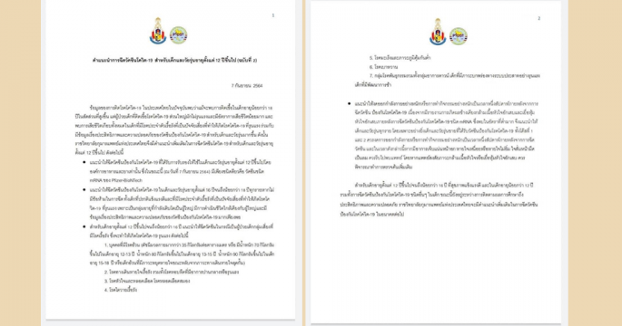 แนะฉีดวัคซีนโควิดเด็ก-วัยรุ่นอายุตั้งแต่ 12 ขึ้นไป