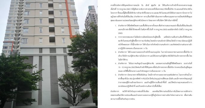 คอนโดวัน เอ็กซ์ สุขุมวิท 26 แจงมาตรการตรวจฆ่าเชื้อเข้มข้น หลังเด็กหญิงติดโควิด-19 เข้าพัก
