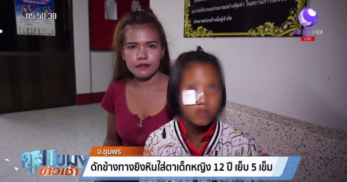 มือมืดดักยิงก้อนหินใส่เด็กหญิงวัย 12 ปี ถูกใต้ตาเป็นแผลเย็บ 5 เข็ม หวิดตาบอด ขณะนั่งซ้อนจักรยานยนต์พี่ชายกลับบ้านบนถนนสายบ้านควนหินมุ้ย-วัดดอนวาส อ.หลังสวน จ.ชุมพร เผยมีชาวบ้านโดนแบบนี้แล้วนับสิบราย แต่เจ็บเล็กน้อย จึงไม่มีใครไปแจ้งความ
