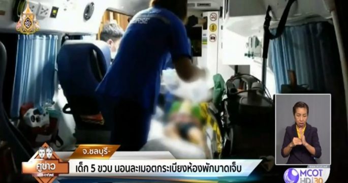 เด็กหญิงวัย 5 ขวบ พลัดตกจากระเบียงห้องพักในโรงแรมแห่งหนึ่งย่านพัทยา บาดเจ็บสาหัส คาดนอนละเมอ