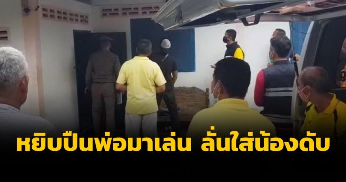 เด็กชายวัย 13 ปี ชวนกันวิ่งเล่น เห็นปืนลูกซองในห้องนอน หยิบมาเล็งยิงใส่เด็ก 6 ขวบ ซึ่งเป็นลูกชายเจ้าของบ้าน กระสุนลั่นใส่หน้าดับคาบ้าน จ.ตรัง พ่อนอนหลับตกใจตื่นขึ้นมาเห็นเป็นลมล้มพับ.