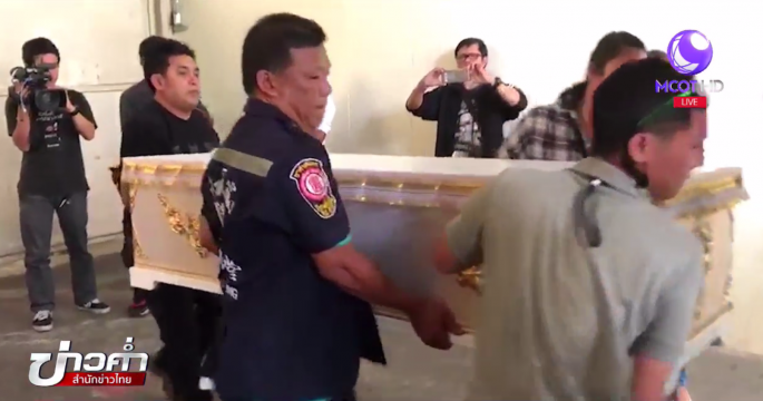 แม่และยายของน้องกล้าวัย 5 ขวบเหยื่อถูกพ่อฆ่าปาดคอ เข้ารับร่างของน้องกล้าไปประกอบพิธีทางศาสนา โดยยายถึงกับเป็นลมเมื่อเห็นร่างหลาน ส่วนแม่น้องกล้า ร่ำไห้กอดศพลูกปริ่มจะขาดใจ