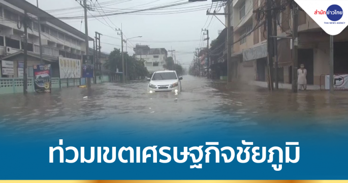 ฝนตกหนักตลอดทั้งคืนจากอิทธิพลพายุ “เตี้ยนหมู่” ทำให้น้ำป่าจากเทือกเขาภูแลนคา เอ่อล้นเข้าท่วมเขตเทศบาลเมืองชัยภูมิ บางจุดระดับน้ำสูงถึง 50-60 ซม.
