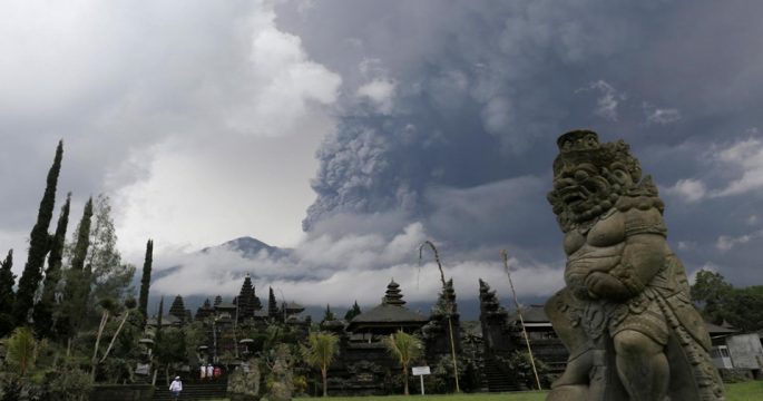 เจ้าหน้าที่อินโดนีเซียกล่าวว่า ภูเขาไฟอากุงที่เกาะบาหลีพ่นกลุ่มควันขนาดใหญ่ ต้องยกระดับเตือนภัยขั้นสูงสุด คาดว่าใกล้ระเบิดในเร็วๆนี้