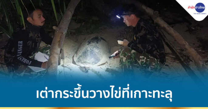 เจ้าหน้าที่กรมอุทยานแห่งชาติฯ ลาดตระเวนพบเต่ากระ “แม่ศรีจันทร์” ขึ้นวางไข่ที่หาดของเกาะทะลุ อ.บางสะพานน้อย จ.ประจวบคีรีขันธ์อีกครั้ง รวม 197 ฟอง