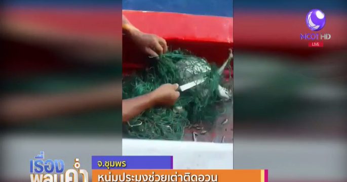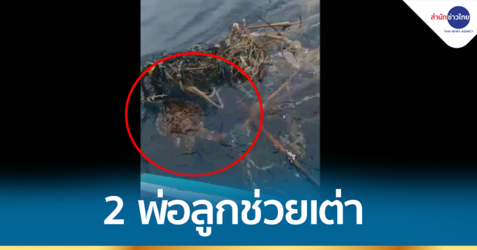 โซเซียลชื่นชม! 2 พ่อลูกช่วยเต่าติดอวน