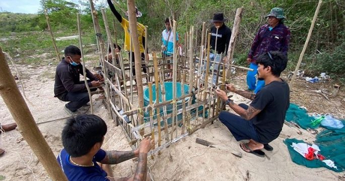 ชุมชนชายฝั่งแม่รำพึงช่วยกันทำคอกล้อมหลุมไข่เต่าหาดบ้านอ่าวเทียน ป้องกันรบกวนการฟักตัว หลังพบแม่เต่าตนุขึ้นวางไข่เกือบ 100 ฟอง นับเป็นครั้งแรกในรอบ 50 ปี และเป็นผลจากการช่วยกันอนุรักษ์สิ่งแวดล้อม