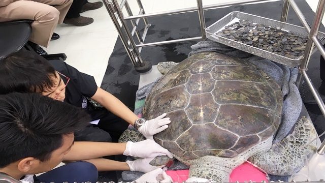 คณะสัตวแพทยศาสตร์ จุฬาลงกรณ์มหาวิทยาลัย ผ่าตัดช่วยชีวิตเต่าตนุที่กลืนเหรียญน้ำหนักถึง 5 กิโลกรัมเข้าไป พบมีเหรียญมากถึง 915 เหรียญ