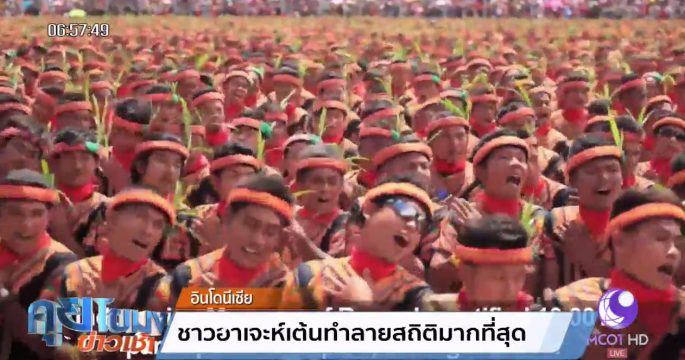 ผู้คนกว่า 10,000 ชีวิต รวมตัวที่ จ.อาเจะห์ อินโดนีเซีย เพื่อร่วมกันเต้นและร้องเพลงด้วยจำนวนผู้เข้าร่วมมากที่สุด หวังกระตุ้นเตือนให้ช่วยกันอนุรักษ์ป่าที่กำลังจะถูกทำลาย