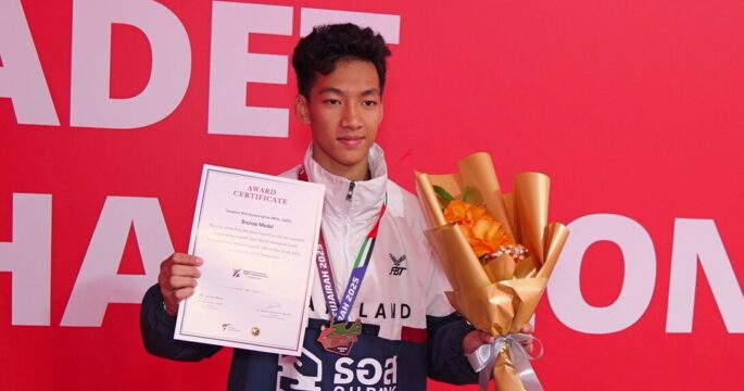 สหรัฐอาหรับเอมิเรตส์ 15 พ.ค. – จอมเตะยุวชนไทยคว้า 2 เหรียญทองแดงปิดท้าย พร้อมคว้าอันดับ 4 คะแนนรวมทีมชาย เทควันโดยุวชนชิงแชมป์โลก ที่ยูเออี เทควันโดยุวชนชิงแชมป์โลก รายการ “ฟูไจราห์ เวิลด์ เทควันโด คาเด็ต แชมเปี้ยนชิพส์ 2025” ที่สหรัฐอาหรับเอมิเรตส์ วันสุดท้าย มีจอมเตะยุวชนไทยลงสนาม 3 คน รุ่น 41 กก.ชาย “น้องชีต้า” อนาวิล พรหมชนะ ออกสตาร์ทจากรอบ 32 คนสุดท้าย ทำผลงานยอดเยี่ยม ผ่านเข้ารอบ 8 คนสุดท้าย หรือ รอบชิงเหรียญทองแดง ก่อนจะเตะเอาชนะ เคียรัช อาบูทาเล็บ จากอิหร่าน 2-1 ยก คว้าเหรียญทองแดงได้เป็นอย่างน้อย ผ่านเข้ารอบรองชนะเลิศ ไปแพ้ให้กับ นิโคไล ซายเชฟ นักกีฬาจากชาติเป็นกลาง 0-2 ยก ได้เหรียญทองแดงกลับบ้าน […]