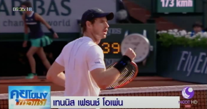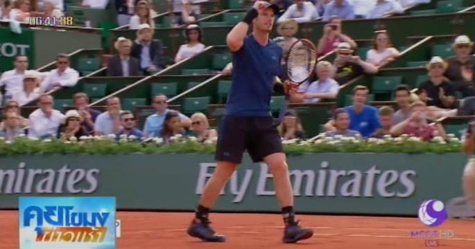 แอนดี เมอร์เรย์ นักเทนนิสหมายเลข 1 ของโลกจากสกอตแลนด์ ผ่านเข้ารอบ 2 เทนนิสเฟรนช์ โอเพ่น ที่ฝรั่งเศส