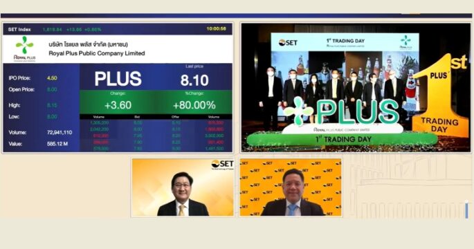 กรุงเทพฯ 20 พ.ค.-บริษัท โรแยล พลัส จำกัด(มหาชน)เปิดซื้อขายวันแรกในตลาดหลักทรัพย์แห่งประเทศไทยวันนี้ (20 พ.ค.) ราคาเปิดซื้อขายเหนือราคา IPO ผู้บริหารเผยเงินที่ได้จากระดมทุนจะใช้ขยายโรงงานและเครื่องจักร สร้างการเติบโตทางธุรกิจ นายภากร ปีตธวัชชัย กรรมการและผู้จัดการ นายแมนพงศ์ เสนาณรงค์ รองผู้จัดการ หัวหน้าสายงานผู้ออกหลักทรัพย์ ตลาดหลักทรัพย์แห่งประเทศไทย พร้อมด้วยผู้บริหารบริษัท โรแยล พลัส จำกัด(มหาชน) ร่วมพิธีเปิดการซื้อขายวันแรกในตลาดหลักทรัพย์แห่งประเทศไทย ในรูปแบบ Virtual Ceremony ด้วยมูลค่าหลักทรัพย์ ณ ราคา IPO 3,015 ล้านบาท ใช้ชื่อย่อในการซื้อขายหลักทรัพย์ว่า “PLUS” โดยเปิดการซื้อขายที่ระดับ 8 บาท เพิ่มขึ้นร้อยละ 77.77 จากราคาหุ้นไอพีโอที่ระดับ 4.50 บาท นายพลแสง แซ่เบ๊ กรรมการผู้อำนวยการ บมจ. โรแยล พลัส เปิดเผยว่า PLUS ประกอบธุรกิจผลิตและจำหน่ายเครื่องดื่ม กลุ่มน้ำผลไม้ ได้แก่ […]