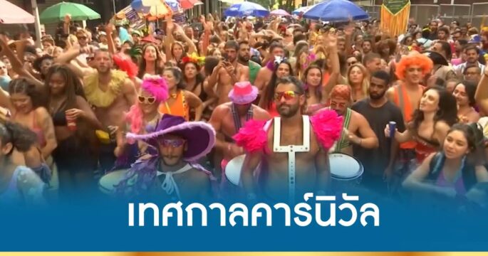 คึกคัก งานเทศกาลคาร์นิวัลบนท้องถนนในนครริโอเดจาเนโร ของบราซิล ประชาชนแต่งกายด้วยชุดหลากสี ร่วมงานสนุกสนาน แม้ทางการจะไม่อนุญาตให้จัดงานฉลอง