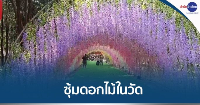 วัดตกแต่งดอกไม้เป็นซุ้มสวยงาม