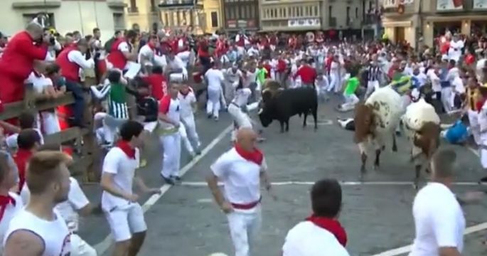 เจ้าหน้าที่ในเมืองปัมโปลนา ทางตอนเหนือสเปนเปิดเผยว่า มีชายถูกวัวกระทิงขวิดที่แขน 1 คน และอีกอย่างน้อย 7 คนได้รับบาดเจ็บในเทศกาลวิ่งวัวกระทิงในวันที่ 5 ของปีนี้