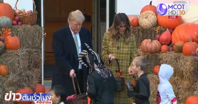 ปธน.โดนัลด์ ทรัมป์ และนางเมลาเนีย ทรัมป์ สตรีหมายเลข 1 ร่วมงานเทศกาลฮาโลวีนที่ทำเนียบขาว โดยแจกขนมให้เด็กๆ ที่พากันแต่งกายเป็นซูเปอร์ฮีโร่ นักบินอวกาศ และเจ้าหญิง