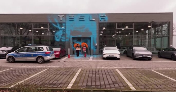 โชว์รูมและศูนย์บริการของบริษัทยานยนต์ไฟฟ้าเทสลาในหลายประเทศ ตกเป็นเป้าหมายการประท้วงต่อต้าน ของกลุ่มเคลื่อนไหวที่ไม่เห็นด้วยกับ อีลอน มัสก์ มหาเศรษฐีซีอีโอของเทสลา