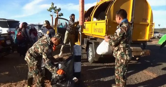 อุบลราชธานี 1 ม.ค.- คนละไม้คนละมือ! นักท่องเที่ยวผาแต้มช่วยกันเก็บขยะเหลือใช้ตามโครงการขยะคืนถิ่น หลังสุขใจในคืนเคาท์ดาวน์และชื่นตารับแสงแรกปี 62 เพื่อลดภาระ จนท.อุทยานฯ-รักษาสิ่งแวดล้อม บรรยากาศการท่องเที่ยวในพื้นที่อุทยานแห่งชาติผาแต้ม อ.โขงเจียม จ.อุบลราชธานี ตั้งแต่เช้า (1 ม.ค.) ยังเต็มเปี่ยมไปด้วยความสุขและความเบิกบานใจ หลังจากนักท่องเที่ยวทั้งชาวไทยและต่างประเทศนับหมื่นคนร่วมกันเคาท์ดาวน์และรับตะวันแสงปรกของปี 2562 เมื่อเวลาประมาณ 06.34 น. ก่อนร่วมกันตักบาตรเพื่อเป็นสิริมงคลต่อครอบครัวและตนเอง จากนั้นทุกคนยังร่วมด้วยช่วยกันในกิจกรรมดี ๆ ของอุทยานฯ ในโครงการขยะคืนถิ่น โดยเก็บขยะที่เหลือใช้จากการท่องเที่ยวนำไปทิ้งในเมือง เพื่อลดภาระให้กับเจ้าหน้าที่อุทยานและไม่ให้มีขยะตกค้างเป็นปัญหาด้านสิ่งแวดล้อม เช่น นายติณณาณัฐ ภัควัน อายุ 40 ปี นักท่องเที่ยวจากจังหวัดขอนแก่น เดินทางมากับครอบครัวจำนวนหลายคน และกางเต้นท์นอนเคาน์ดาวน์ได้เตรียมถุงดำมาจากบ้านและถุงที่ได้รับแจกจากเจ้าหน้าที่จัดเก็บขยะที่นำขึ้นมากินมาใช้ไม่ให้หลงเหลืออยู่ เพื่อคืนพื้นที่สะอาดให้กับธรรมชาติ.-สำนักข่าวไทย