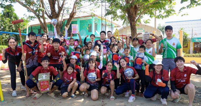 “BBG เติมสีสัน” 18-19 ม.ค. 66 คณะผู้บริหารนำโดยนายเอกภพ เดชเกรียงไกรสร ประธานสโมสรกีฬาบีบีจี นักกีฬา เจ้าหน้าที่ และอาสาสมัคร รวมพลลงแรงช่วยน้องเติมสีสัน ณ โรงเรียนวัดถ้ำเข้ ตำบลวัดไก่เตี้ย อำเภอหันคา จังหวัดชัยนาท งานนี้ ทุกคนได้ร่วมกัน ซ่อมแซมปรับปรุงลานกีฬาอเนกประสงค์ ให้กลายเป็นสนามแบดมินตันและตะกร้อกลางแจ้งที่มีสีสันสวยงาม และทาสีสร้างสรรค์ลวดลายเครื่องเล่นในสนามเด็กเล่นร่วมกันกับน้องๆ นักเรียนโรงเรียนวัดถ้ำเข้ นอกจากนี้ยังได้มอบอุปกรณ์กีฬาให้น้องๆ ไว้ใช้เพื่อฝึกเล่น และพัฒนาตนเองในด้านกีฬาต่อไป เด็กหญิงนิชดา ลีคำ (น้องซันเดย์) และนางสาวปภาวรินทร์ เปลี่ยนปู่ (น้องขวัญ) ตัวแทนนักกีฬาสโมสรกีฬาบีบีจี กล่าวว่าวันนี้ได้ทาสีสนามเด็กเล่น และสนามกีฬา เป็นงานที่ยาก แต่ก็รู้สึกสนุกมาก สนามเด็กเล่นก็สวยมีสีสัน น่าเล่นมากขึ้นจริงๆ ด้านนางสาวกมลพรรณ ทะนุก้ำ นางสาวเพียงใจรัก เทพชู และ นางสาวณิชกานต์ ขวัญแดง เจ้าหน้าที่และโค้ชผู้ฝึกสอนสโมสรกีฬาบีบีจี กล่าวว่ารู้สึกสนุก น้องๆตั้งใจกันดีมาก ช่วยกันทำสนาม ทาสีจนเสร็จ สนามเด็กเล่นดูมีสีสัน น่าเล่น และในส่วนของสนามสนามกีฬาที่มีสีสันและเส้นแบ่งตามหลักกีฬาสากลที่ถูกต้อง จะช่วยเรื่องการจดจำทำให้น้องๆพัฒนาด้านกีฬาได้ดีขึ้น […]