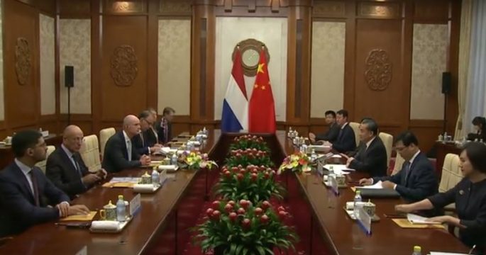 นายหวัง อี้ รัฐมนตรีต่างประเทศจีนและนายสเตฟ บล็อค รัฐมนตรีต่างประเทศเนเธอร์แลนด์หารือกันที่กรุงปักกิ่ง