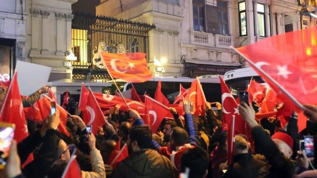 ตำรวจเนเธอร์แลนด์ใช้น้ำแรงดันสูงสลายชาวตุรกีหน้าสถานกงสุลเมืองรอตเทอร์ดาม หลังจากไม่อนุญาตให้รัฐมนตรีตุรกีมาร่วมการชุมนุมเชิญชวนคนไปลงประชามติ