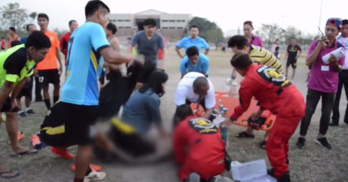 หนุ่มวัย 25 ปี ล้มฟุบหมดสติคาสนามฟุตบอล จ.ชลบุรี สุดยื้อเสียชีวิตในเวลาต่อมา คาดหัวใจวายเฉียบพลัน