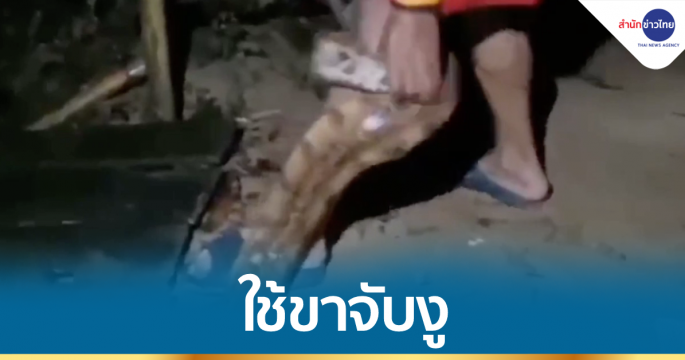 ล้วงคอนักรบ ลอบเข้าฐาน ตชด.กลางดึก เจอผู้หมวดสุดเจ๋ง ใช้ขาจับงูหลาม ยาว 2 เมตร คาดมาเขมือบสัตว์เลี้ยง