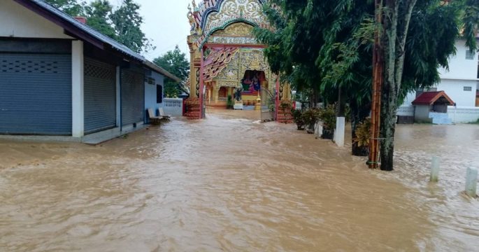 น่าน 17 ส.ค.- ผู้ว่าฯ น่านสั่งเฝ้าระวังพื้นที่เสี่ยง 24 ชม. หลังมีสัญญาณเตือนระดับน้ำ น่าห่วงอำเภอสันติสุข ขณะที่เบบินคาทำฝนตกต่อเนื่องวัดสะสม 158-200 มม. น้ำท่วมหลายอำเภอ กระทบบ้านเรือน-วัด โรงเรียนปิดสอนชั่วคราว สภาพอากาศในจังหวัดน่านเช้านี้ (17 ส.ค.) ยังมีฝนตกต่อเนื่องจากเมื่อคืนที่ผ่านมา  โดยเฉพาะ 3 อำเภอ คือ ปัว สันติสุข และแม่จริม  มีปริมาณน้ำฝนสะสมสูง 158-200 มิลลิเมตร  ส่งผลให้ลำน้ำยาวเพิ่มสูงอย่างรวดเร็วเอ่อท่วมชุมชนริมฝั่งหมู่บ้านร้องและหมู่บ้านส้าน  ต.สถาน อ.ปัว และท่วมอาคารเรียนชั้นล่างของโรงเรียนบ้านส้าน สูงกว่า 50 เซนติเมตร ทางโรงเรียนประกาศปิดการเรียนสอนชั่วคราว เนื่องจากระดับน้ำยังมีแนวโน้มสูงขึ้น และที่หมู่ 13 บ้านส้านใต้ มีชาวบ้านถูกไฟฟ้าช็อตเสียชีวิตขณะขนของหนีน้ำท่วม ส่วน อ.สันติสุข น้ำป่าหลากท่วมถนนสายน่าน-สันติสุข ช่วงบ้านภูแยง ตำบลดู่พงษ์ และสายบ้านดอนไชย ตำบลป่าแลวหลวง รถทุกชนิดไม่สามารถผ่านได้  อีกทั้งลำน้ำมวบล้นฝั่งท่วมบ้านเรือนอย่างรวดเร็ว หนักสุดพื้นที่ลุ่มต่ำน้ำสูงเกือบ 2 เมตร และยังมีความแรงของน้ำป่าหลากกัดเซาะ […]