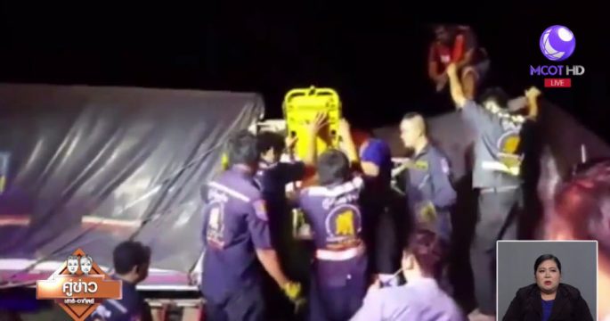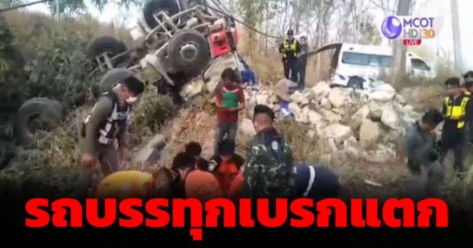 รถบรรทุกเบรกแตก ตัดใจหักหลบด่าน บาดเจ็บสาหัส