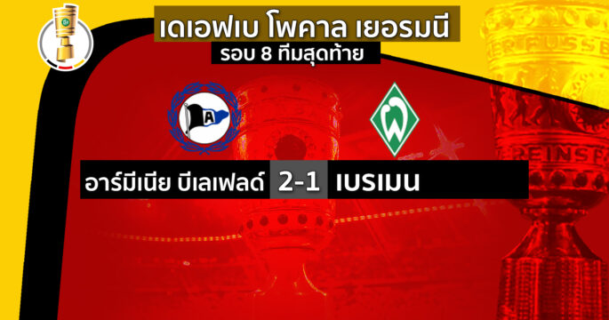 อาร์มีเนีย บีเลเฟลด์ จากลีกา 3 พลิกล็อกเอาชนะ แวร์เดอร์ เบรเมน 2-1 ผ่านเข้ารอบตัดเชือก ศึกเดเอฟเบ โพคาล เยอรมนี