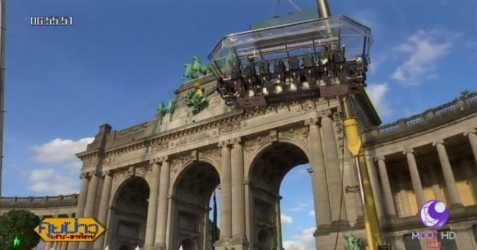 เบลเยียมจัดกิจกรรมดินเนอร์ลอยฟ้าบนแท่นที่ระดับความสูง 40 เมตร โดยใช้เครนยก สัมผัสประสบการณ์รับประทานอาหารจากที่สูง