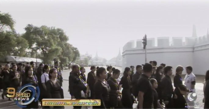 เอเอฟพีรายงานข่าวชาวไทยจำนวนมากเข้าแถวยาวเหยียดหน้าพระบรมมหาราชวังเพื่อรอเข้าไปกราบถวายสักการะเบื้องหน้าพระโกศพระบรมศพที่เปิดให้ประชาชนเป็นวันแรกในวันนี้
