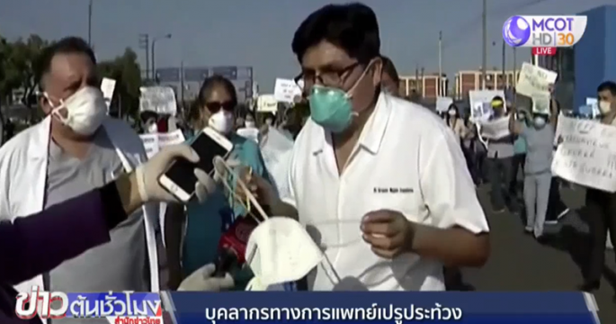 บุคลากรทางการแพทย์ตามโรงพยาบาลต่างๆ ในเปรู ออกมาชุมนุมประท้วงตามท้องถนน แสดงความไม่พอใจปัญหาการขาดแคลนหน้ากากอนามัย และชุดป้องกันการติดเชื้อ