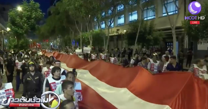 การชุมนุมประท้วงปัญหาค่าครองชีพแพงที่กรุงลิมาของเปรู บานปลายกลายเป็นการปะทะกันระหว่างกลุ่มผู้ประท้วงกับตำรวจ