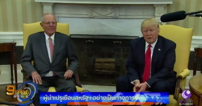 ประธานาธิบดีโดนัลด์ ทรัมป์ เปิดทำเนียบขาวให้การต้อนรับประธานาธิบดี เปโดร พาโบล คูซินสกี้ ของเปรู พร้อมกล่าวว่า เปรูเป็นประเทศเพื่อนบ้านที่ดีเยี่ยมของสหรัฐ