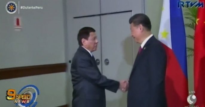 ประธานาธิบดีโรดริโก้ ดูเตอร์เต้ ของฟิลิปปินส์ หารือทวิภาคี กับประธานาธิบดี สี่ จิ้นผิง ของจีน นอกรอบระหว่างการประชุมเอเปค ที่กรุงลิมาของเปรู
