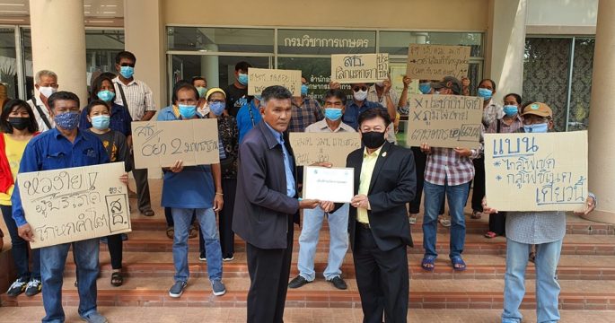 เกษตรกรบุกกรมวิชาการเกษตรทบทวนแบนพาราควอต ค้านนำเข้าสินค้าเกษตรที่มีค่าตกค้างจากสารเคมีที่แบน จี้นายกฯ เปลี่ยนรัฐมนตรีเกษตรฯ