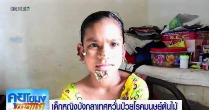 เด็กหญิงชาวบังกลาเทศวัย 10 ขวบ มีหูดคล้ายเปลือกไม้งอกบริเวณใบหน้า คาง หู และจมูก ทำให้เธอเป็นหญิงรายแรกของโลกที่เป็นโรคมนุษย์ต้นไม้