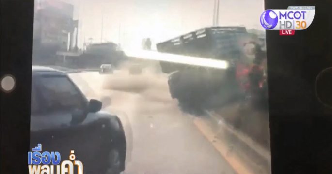 คลิปวินาทีจากกล้องหน้ารถ ที่บันทึกเหตุการณ์ขณะรถบรรทุกพ่วง 18 ล้อ เสียหลักข้ามเกาะกลางถนน ชนยับ 4 คันรวด ส่งผลให้มีผู้เสียชีวิต 2 ราย