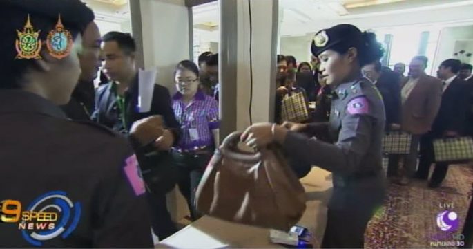 เจ้าหน้าที่ดูแลรักษาความปลอดภัยเข้ม พร้อมรับนายกรัฐมนตรีเปิดงานวันท่องเที่ยวโลก World Tourism Day 2016 เบื้องต้นนำเครื่องสแกนวัตถุระเบิดมาติดตั้งบริเวณจุดทางเข้า